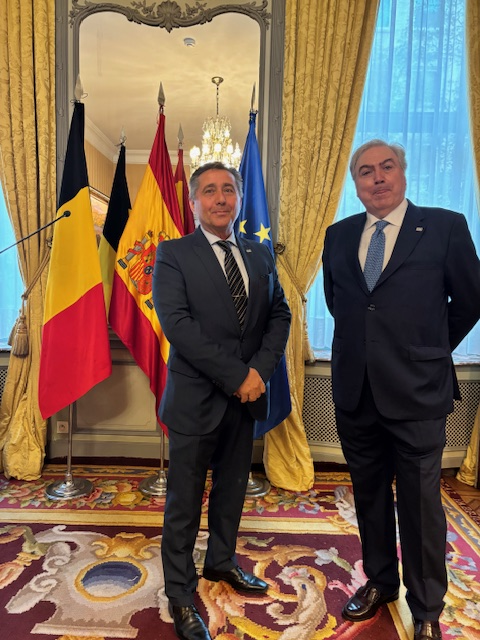 El presidente, Manuel Martínez y el secretario general, Juan Antonio González, como representantes de nuestra organización han sido recibidos por el embajador de España en Bélgica, José María Rodríguez Coso. Al acto también han asistido los representantes de CEC, Olga Molina, directora de la secretaría y Pere Vilanova como responsable de Comunicación de la organización europea.